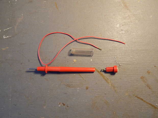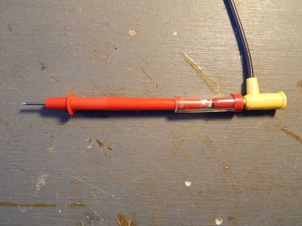 Si no encaja el enchufe de plátano, tal vez usted debe adaptarse, las imágenes muestran cómo algunos tubos y conectores de banana pueden agregarse a una punta de prueba para hacer la punta de prueba capaz de jack.