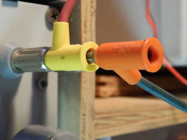 Clavijas tipo banana mira un poco como un plátano muy pequeño de metal. Son muy útiles como Conecte a un montón de cosas. Especialmente gatos de plátano (ver imagen). Pero también debe saber que caben un montón de otras cosas. La mayoría postes tienen un gato construido pulg (ver imagen). Mi ficha banana favoritos se llama conectores de tipo banana apilable, tienen un conector en la parte posterior y se pueden conectar uno a otro y hasta ver las fotos de la pila. Convierte en Pamona, no es la mejor fuente pero aquí es un par de enlaces: