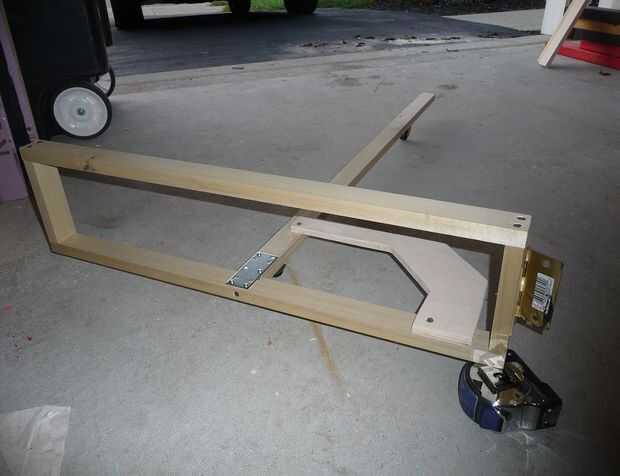 Un marco de 1x2s se convertiría en la base de las escaleras y fue unido a la bisagra. Dos echadores del eslabón giratorio se agregaron a este marco para ayudar a llevar el peso de la escalera (que no mucho) y dejaron suavemente el rodillo hacia adelante y hacia atrás. Pienso montar la bisagra para una pieza de 2 x 4, que a su vez estaba conectado a la base.