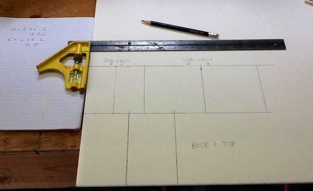 No puedo recalcar suficientemente la necesidad de una medición precisa y el diseño. Si es preciso que funciona. Si no no. Medir la longitud y la anchura de la ratonera. Usted necesitará diseño de una base y la tapa. Son del mismo tamaño. La fórmula para la longitud es la longitud de ratonera + doble el espesor de su espiga + doble el espesor de su plywood+2mm(1/8"). Para la anchura es ancho de ratonera + doble el espesor de la espiga + doble el espesor de la madera contrachapada + 2mm(1/8"). Las paredes laterales tienen la misma longitud como la ratonera y 10cm(4") alta. Las paredes laterales son del mismo ancho que la ratonera y 10cm(4") alta. Use una escuadra para asegurarse de que todo es perfectamente recta. Luego con cuidado cortar tu.