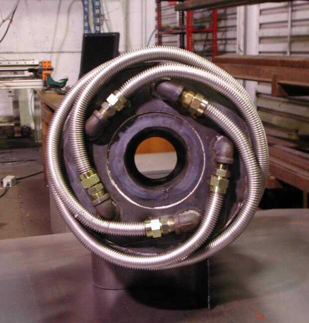 - Puede que necesite moler de residuos de fundición en los codos para conseguirlos para caber a través de los orificios de la placa de extremo inferior. Si usted necesita, no afile el collar como este collar se utiliza para espaciamiento compensado durante la fabricación más abajo.