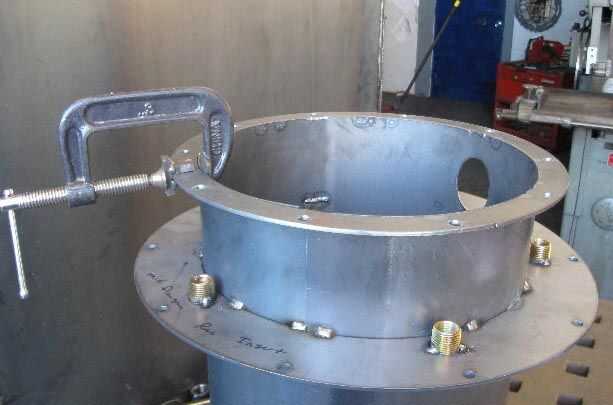 • Tire brida y el tubo del recipiente firmemente con abrazaderas tipo C como vira alrededor del círculo