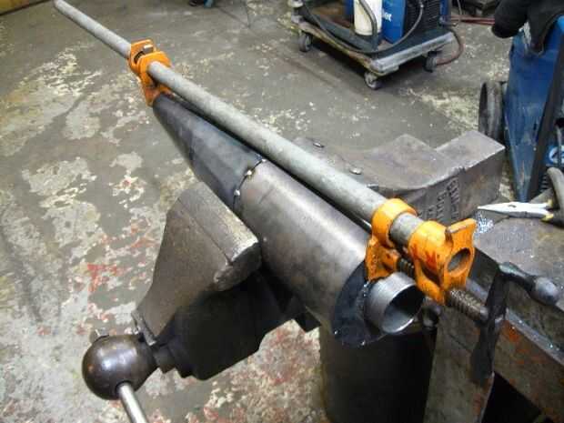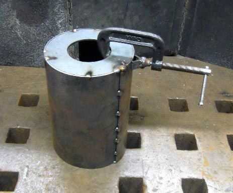• Llevar el cilindro superior y parte inferior cónica para evaluar la alineación. La soldadura es generalmente más fácil si el labio de la forma cónica es ligeramente más grande que el cilindro, permitiendo que el cilindro para deslizarse hacia abajo en su interior aproximadamente 1/8". También está bien si cumplen con borde a borde. Lo importante es que la costura es liso e incluso. Cualquier método que se logra está muy bien.