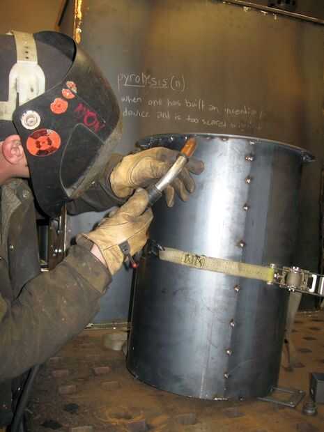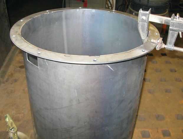 • Abrazadera de anillo de la brida superior en la parte superior del vaso tubo y bordada en su lugar. SÓLO/soldadura de tachuela en la parte inferior de la brida. Si usted tiene suficientes pinzas, hacer el anillo entero. Si no tienes suficientes abrazaderas, trabajan en una dirección, asegurándose de que el buque está apretado hacia fuera a la brida.