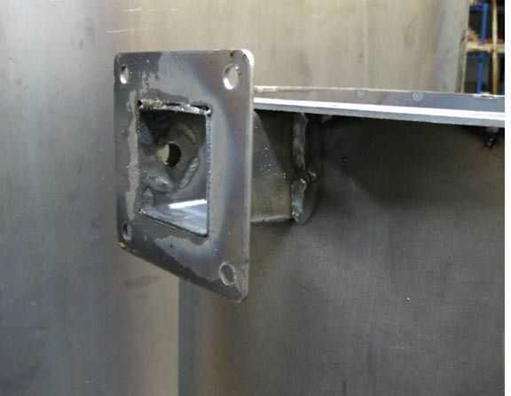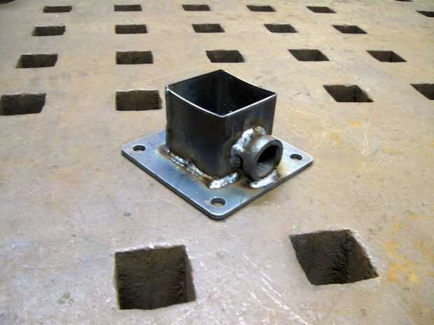 • Brida de soldadura en el extremo del tubo cuadrado de 2". Brida es simétrica no especial orientación. Pero asegúrese de que el tubo quede al ras con la placa del reborde