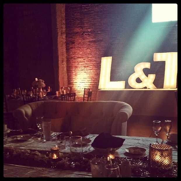 La boda fue este fin de semana pasado. He incluido una copia de una foto tomada por el Coordinador del evento en la sede para que pueda ver lo que parecían las letras en la cena y fiesta.