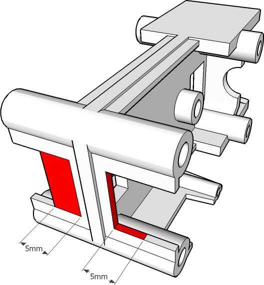 Simplemente quite lijar o recortar 5mm de material (plástico) de la carcasa de la caja de engranajes principal como se muestra en la ilustración de abajo.