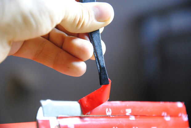 Después de un par de minutos, pelado de la toda la cinta. No sé si has visto mi 8 utiliza inusual para pinzas Instructable, pero allí, se muestra cómo pelar el forro de la liberación de cinta de doble cara con pinzas. Ir echa un vistazo!
