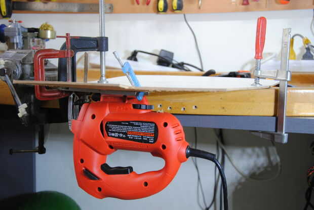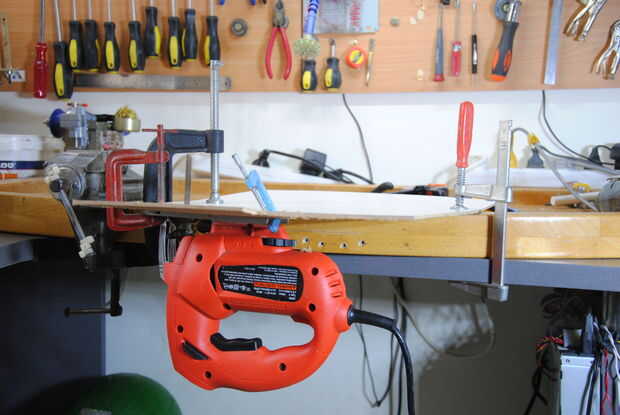 Y eso es lo que me inspiró para hacerlo. Montado en una placa delgada de metal y utilizado dentro de la empuñadura de un tornillo de banco. Ahora, yo puedo también montarlo en la pared!