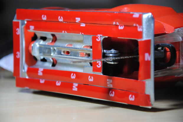 Allí no es mucho de explicar para hacer aquí, la imagen es prácticamente autoexplicativo. Cubrí cada parte posible de la base con cinta de doble cara.