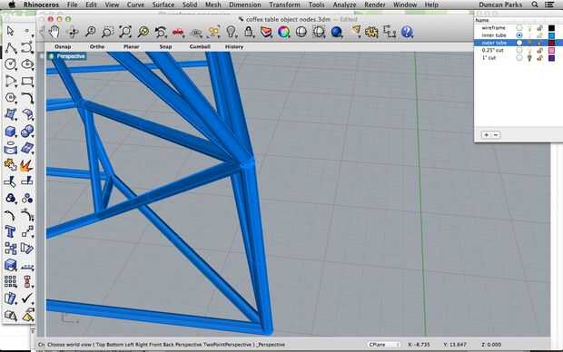He utilizado cuartos pulgadas tacos con diámetros que varían entre 0,24"- 0,25", usé 0,26" el diámetro interno de conector. Antes de construir cualquier tubería, asegúrese de que ninguna de las curvas se unen. Los ángulos entre las curvas causa interesante pero troublsom irregularidades en los conectores. Seleccionar todas las curvas, utilice el tubo: comando de tapas, y luego pasar todos los tubos a la capa interna de tubos. Ocultar la capa.