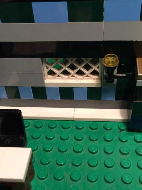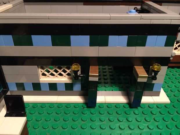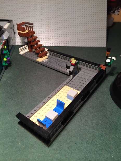 Para el balcón me construyó una placa de 8 x 27 luego había unida a una placa similar de 6 x 24. Luego añadí pedazos de barra de 1 x 4 prisión completamente redonda para el borde del balcón. Las escaleras se pusieron entonces en, que conduzca a la puerta de ático segundo piso.