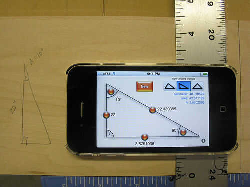 Le enchufamos esos números en mi aplicación iPhone dandy práctico que calcula triángulos y conseguir la pierna inferior corto siendo 3,879". Tengo otra aplicación útil que convierte decimales a fracciones y encontrar que esto es aproximadamente 3 3/8".