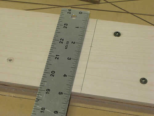 Entonces es sólo una cuestión de medir esa distancia en el travesaño y luego trazando una línea entre él y la marca en la parte superior.