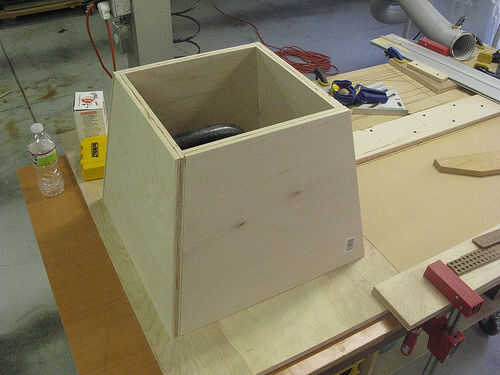 Puedes ver cómo funciona en la segunda foto. Tomé el pedazo largo de stock sólo había recortado el final de y tiró hacia atrás hacia la izquierda y se voltea cara abajo para que el siguiente corte resultaría en forma correcta para los lados de la caja. (No los bancos significa terminaría con un paralelogramo.) Toma tu cinta métrica y marcar el 17 3/4" o cualquiera que sea la longitud es de su parte inferior. Luego deslice la tira en y por debajo de su regla, alineando la marca que acaba de hacer con el lado derecho del corte de sierra en el carril superior. Ahora al hacer este corte a tener una sola pieza de lado terminado.
