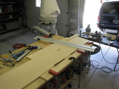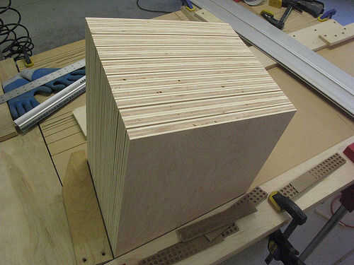 La tercera imagen muestra la configuración toda terminado y listo para ir. Los bloques de corte probablemente tomó la mitad del tiempo que llevó a configurar la plantilla de corte.
