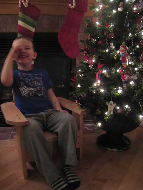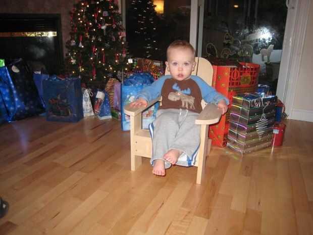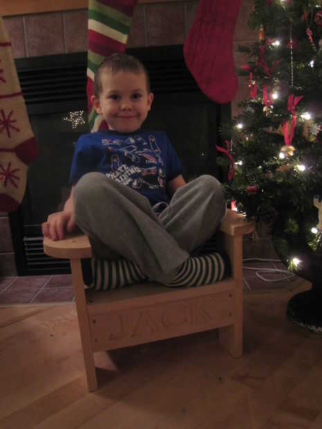 Hannah y Keira tiene sillas nuevas para la Navidad este año. La primera foto es de mi sobrino en la silla original que he construido sin utilizar cualquier jigs. WHOA!! Como se puede ver Jack todavía ama a su silla 3 años más tarde!