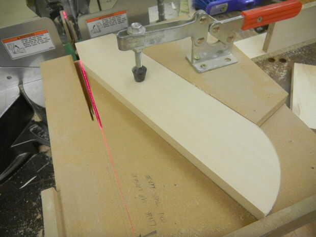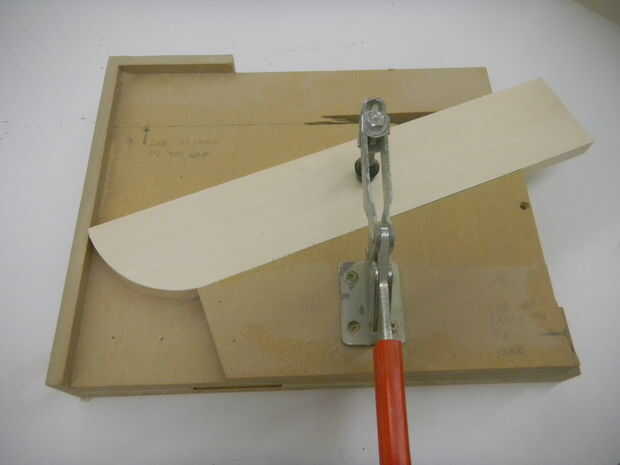 5. El objetivo aquí es hacer dos piernas iguales. Asegúrese de que la sección curva de la pierna toca el borde de la plantilla antes de que se sujeta en su lugar.