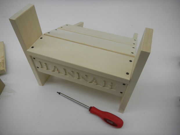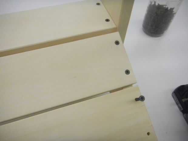 6. Luego agregas la primera pieza de asiento. Avellanar los agujeros están en la misma posición.