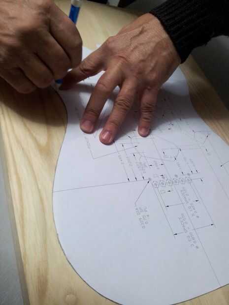 en este paso, tenemos que transferir el plan a nuestro pedazo de madera. Puede utilizar papel negro para hacerlo. En este tutorial puse un plan como fender estilo para hacerlo. Puede ver las medidas y tratar de hacer algo nuevo. Este es el momento de elegir un estilo creativo. Como nos encanta stile de defensa utilizamos nuestro plan.