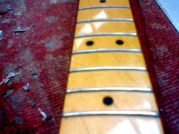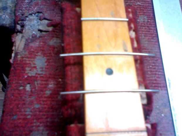 Usted puede hacer el cuello en la misma madera, o en madera, utilizo una madera español llamada "palo de hormigo". Utilice varnice para lo del dolor. Para hacer el traste utilizo nikel metal. Cortar y pegar en una línea poco marcados con dremel. Utilice papel de lija para prepararla. Para hacer la tuerca uso un hueso real. Tienes que usar papel de lija a la modelo. Y finalmente es el mejor soporte las cuerdas, mirar la foto.