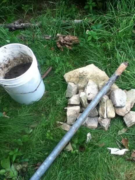 Para la construcción de esta fragua tendrá unas rocas, usé granito, un balde de barro y un hierro o tubo de acero y sí sé que es galvanizada la tubería en este tutorial y que la calefacción de metal galvanizado es mala, pero para contrarrestar esto cubrió el tubo en una capa de barro y utilizo esta Fragua de fuera para que esté bien ventilada.