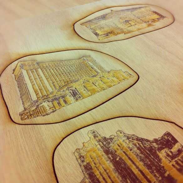 he utilizado Adobe Illustrator y al principio sólo cayó en las fotografías en color y al les como estaban. Lo que salió fue sobre todo una mancha marrón que llevaba cierta semejanza a un edificio. Puesto que la clave es tener contraste, fui y había hecho cada imagen blanco y negro y aumenta el contraste por lo que los negros son realmente negros y los blancos eran muy blancos.