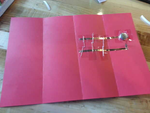 Agregar una línea de cinta de cobre que puede cinta las patas positivas de los LEDs a él fácilmente. Si usted necesita doblar su línea a doblar la cinta de cobre como pegarla hacia abajo. Añadir una segunda línea para las patas negativas. Asegúrese de que esta cinta línea no tenga contacto con su línea positiva, esto dará como resultado un corto circuito y un no funcional light.* **