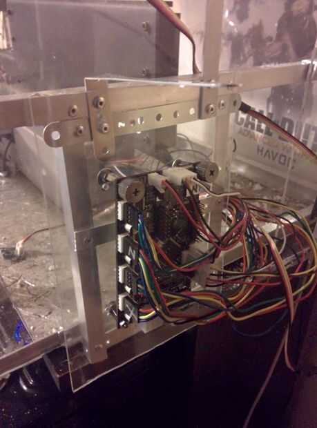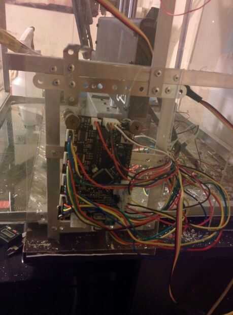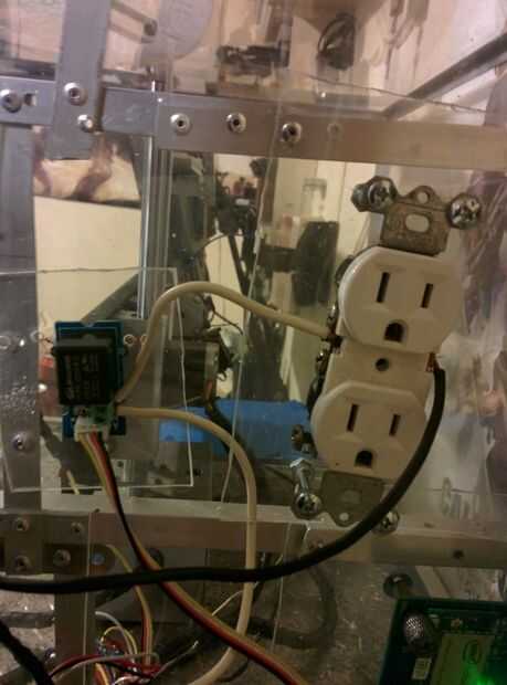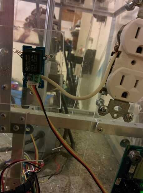 Esta parte es realmente suya. Usé algunos chatarra aluminio y acrílico para hacer un marco y había montado en las juntas a las piezas de acrílico. Cada tablero se monta en su propio pequeño pedazo de acrílico un poco más grande que las tablas. El secador de pelo se monta a otro unos trozos de aluminio y unos lazos zip que el agujero que se hizo con una Dremel. Enganchar encima de un trozo pequeño de alambre entre el relé y el tornillo terminal en la salida. Ahora Conecte el cable desde el cable al otro borne de tornillo en el relé. Conectar el cable de tierra al otro borne de tornillo de la salida. Conectar el módulo de temperatura Grove a A0 en el escudo de Arboleda.