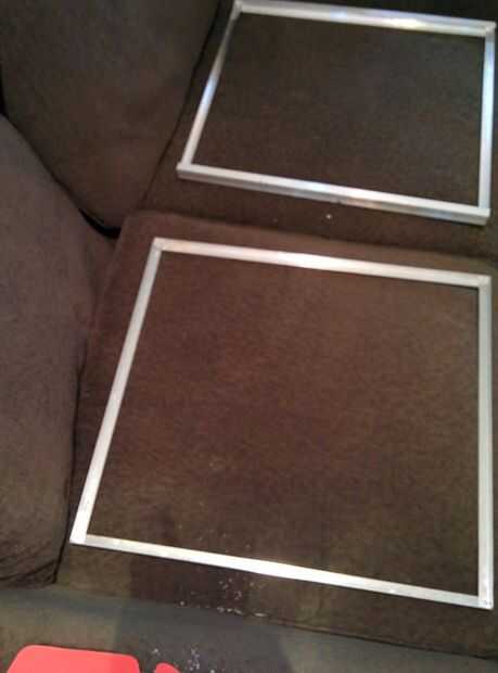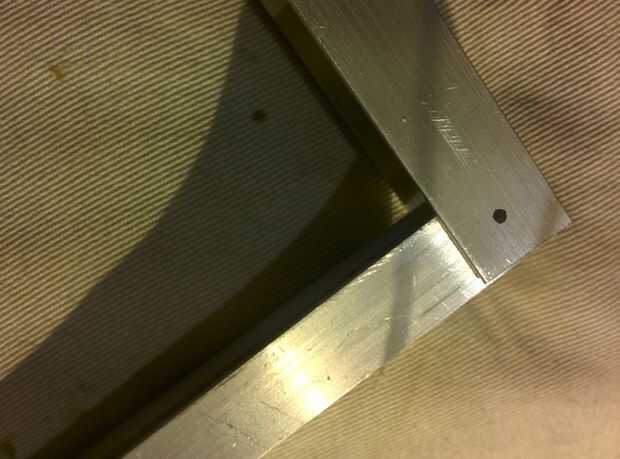 Cuidadosamente perforar para los remaches de la esquina y repita el procedimiento en todas las vigas. Alinee los orificios de 2 de las vigas (1-18'' y 1-20'') para formar un ángulo de 90 grados (como en la foto de arriba). Repetir, luego conectar las dos mitades para formar un cuadrado. Esto formará la parte superior.