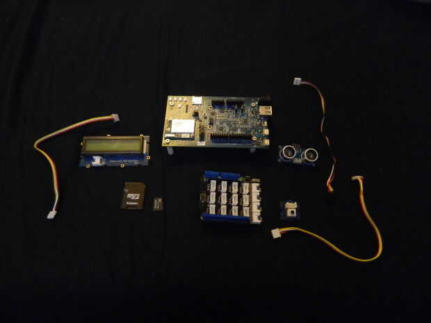 Entonces necesita un botón, una tarjeta micro SD y pantalla LCD RGB, un sensor de distancia (HC-SR04)