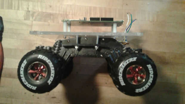 Fue un caballete plástico a cada lado del chasis donde el cuerpo conectado. He cortado las aletas de plástico con cuchillas de ángulo y utiliza las ranuras abiertas expuestas para conectar la plataforma con tornillos y tuercas.