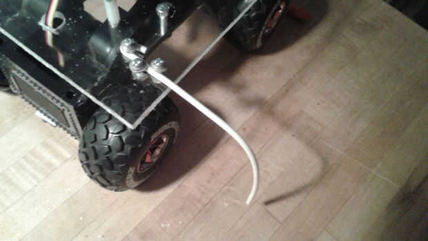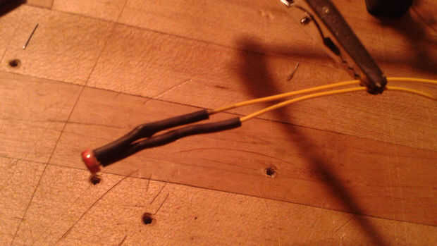 Estaba pensando en los sensores que tenía que elegir y los objetos que se podría utilizar para interactuar con ellos. Tenía una gran pila de imanes de disco duro que activaría el sensor Hall muy bien. Tuve algunos bloques de madera antigua que activaría el sensor de distancia infrarrojo y un montón de LEDs para un fotosensor. La siguiente consideración era cómo montar y posicionar los sensores. Puesto que los imanes eran planos, me decidí a montar el sensor Hall en un brazo de alambre que sacó desde el lado del robot y apuntando hacia abajo. Para mantener las cosas simples, me decidí a montar una fotocélula en un tubo oscuro a la misma palanca y gatillo con LEDs con cinta adhesiva a pilas de monedas. Ver las fotos de arriba para los detalles.