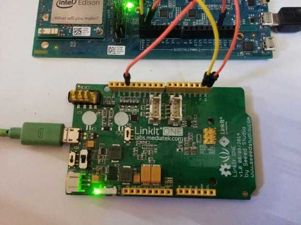 No hay mucho de un circuito y conexiones muy simples entre el Linkit y el Edison de Intel.