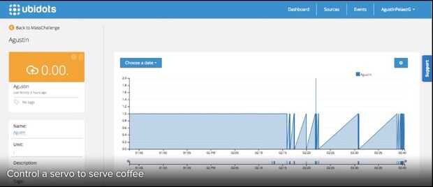El Servo está conectado a pin D3 en el Kit de Grove. Puede configurar este Servo para accionar cualquier válvula de física, como una máquina de café. Hice un simple posavasos por el bien de la demo.