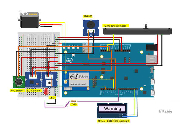 Ahora conectar los componentes de hardware, como sigue: