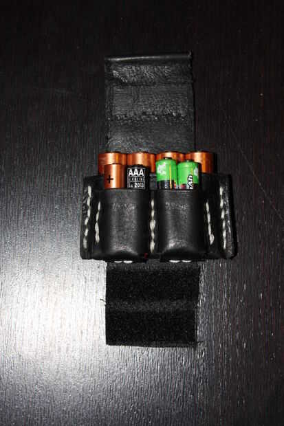 Guardo mi equipo en una (no tan) thig-bolsa pequeña y se utiliza para contener las pilas de mi Flash en una lata altoids, pero recientemente empecé a encontrar un poco inconveniente cambiar con una mano, sosteniendo la lata con el otro, así que he tenido esta idea divertida: tomé mi vieja cartera de piel, lo destruyó y lo reciclado , convirtiéndose en un soporte de batería de cinturón que puede contener 4 baterías del AA que uso para el flash y 4 baterías AAA utilizo para mi intervalómetro o disparador inalámbrico.