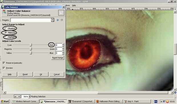 Desplegable en el menú herramientas y herramienta de seleccionar el color y balance de color. Mueva el control deslizante hacia el rojo de la sombras, medios tonos y resaltados. Uso menos rojo en las luces altas.