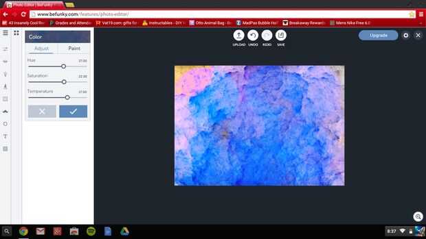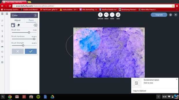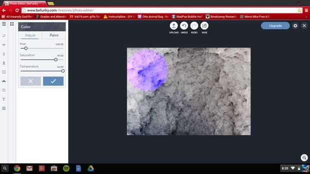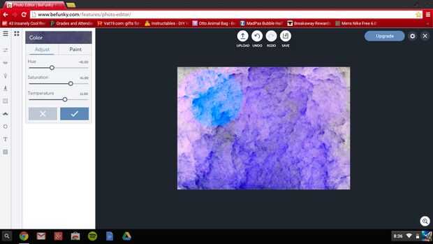 Esto es lo más importante, no puede omitir el paso de toda ' ible. Estamos haciendo el primer color de la galaxia. Para ello, haga clic en la opción "Color". (El que dijo era la principal herramienta!) A continuación, elija su tamaño, dureza, etc.. Luego, realizar una gota en la esquina o la imagen. Sé que usted no puede ver todavía! Todavía tenemos que definir el color! Cambiar a la otra sección en el menú. Se llama ajuste. Aquí usted puede ensuciar con el color hasta encontrar uno te gusta. Jugar con la tonalidad conseguirá el color, la saturación es el brillo y la temperatura es como un fluer, ves el calor radiante o lo que sea. Sólo jugar con eso también ayuda! Después de recibir el color te gusta, (dad debe cambiar color!) volver a pintar y hacer marcas al azar alrededor de la imagen. No color que completamente en, vamos para un look al azar. Repita esto con otros colores. Usé azules, morados y algunas aguas. Quería una galaxia más brillante, pero a lo que sea!