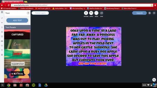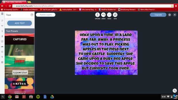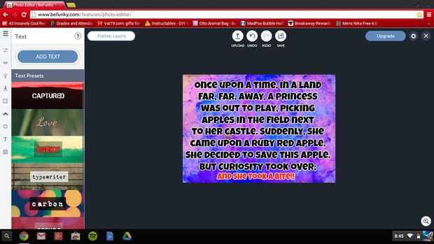 Una vez que esté satisfecho con su galaxia, puedes añadir texto, etiquetas o cualquier otra cosa que te gusta. He añadido el texto de principio a un cuento de hadas, que te lleva a una suspensión del acantilado. Pero no todo lo que te gusta! Cambiar el fondo (cuadro de texto) en el texto a cualquier opacidad que te gusta. Cambiar los colores, fuentes, estilo de texto, cualquiera que sea! ¡Que te diviertas!
