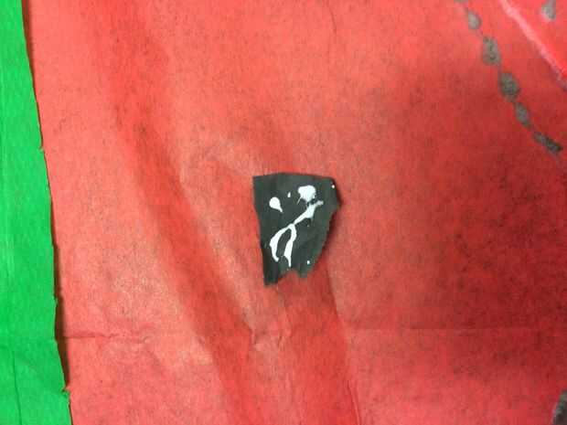 Hacer que las semillas de la sandía cortando papel tejido negro en pequeños parches para las semillas. colocar pegamento sobre el rectángulo verde luego lo pones en el rojo.
