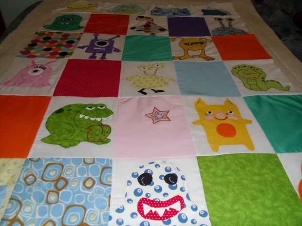 Colocar la colcha en la cama, alfombra o coser mesa revés frente a usted.