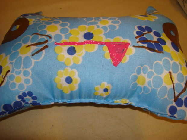 hice un gato de peluche de uno de los patrones de la colcha para mostrar lo que puede hacer; para agregar un toque especial a la colcha para dormir. Pinté la cara pero lo no sería para los niños que todavía ponen las cosas en sus bocas. Bordado el trabajo sería más seguro para los niños pequeños.