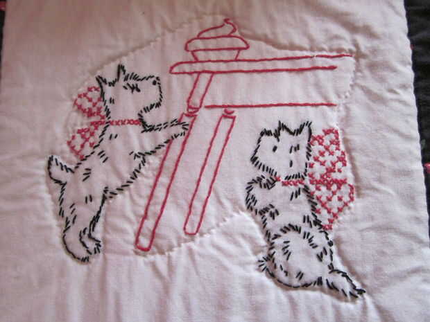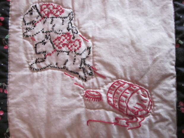 Que todos los bloques de acolchado a mano, usando un aro grande acolchado para sujetar a la tela enseñó. Utilizando acolchar hilo y una aguja, tejido en el interior borde de todas sus plazas juntado las piezas. También desea edredón alrededor de sus diseños bordados.