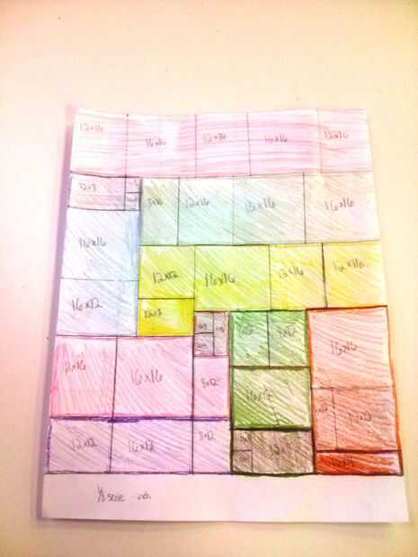Yo también codificado por color el patrón como un plan para la costura. Cada uno de los colores se cosieron en tiras manejables y secciones.