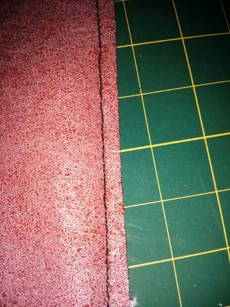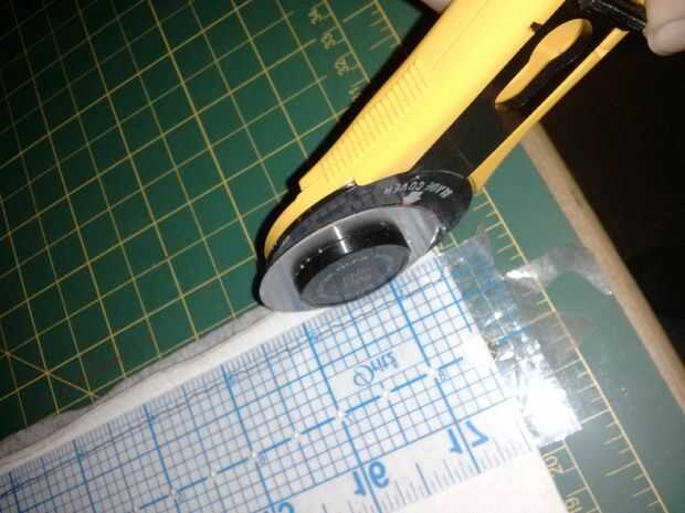 Después de que los parches se cosen en tiras cortado el margen usando un cortador rotatorio y la almohadilla de corte para hacer la costura de 1/4 de o menor. Esto era para hacer las tiras poner adular cuando abrió y reducir exceso a granel.