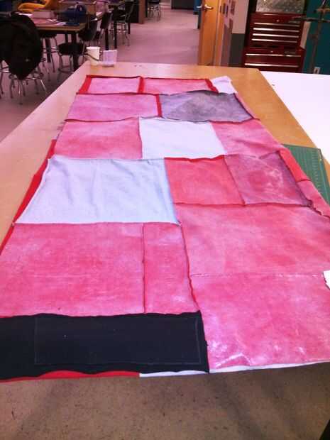 Para terminar la parte delantera del tejido, coser cada una de las tiras juntos en una pieza final y el ajuste de cualquier margen de costura extra.