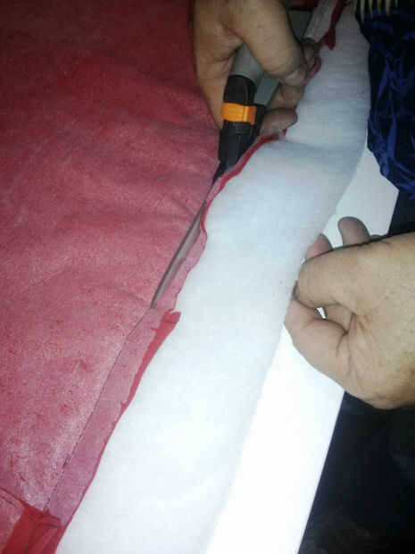 Ajuste una vez cosido el bateo exceso y costura como cerca de la puntada como sea posible para ayudar a que el tejido en posición plana.