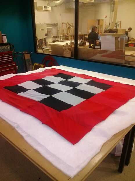 Luego usé una puntada recta con un 5/8 en la costura por el borde todo el camino alrededor de la colcha.