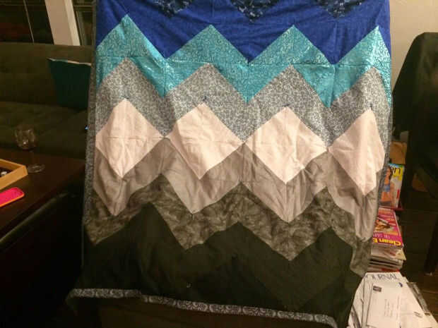 Este top de la colcha se puede coser en un día! Usted sólo cose cuadrados y hasta con un gran diseño moderno, de chevron de triángulo. Incluso incluir un diagrama de acolchado si usted necesita un poco de inspiración sobre cómo terminar este proyecto